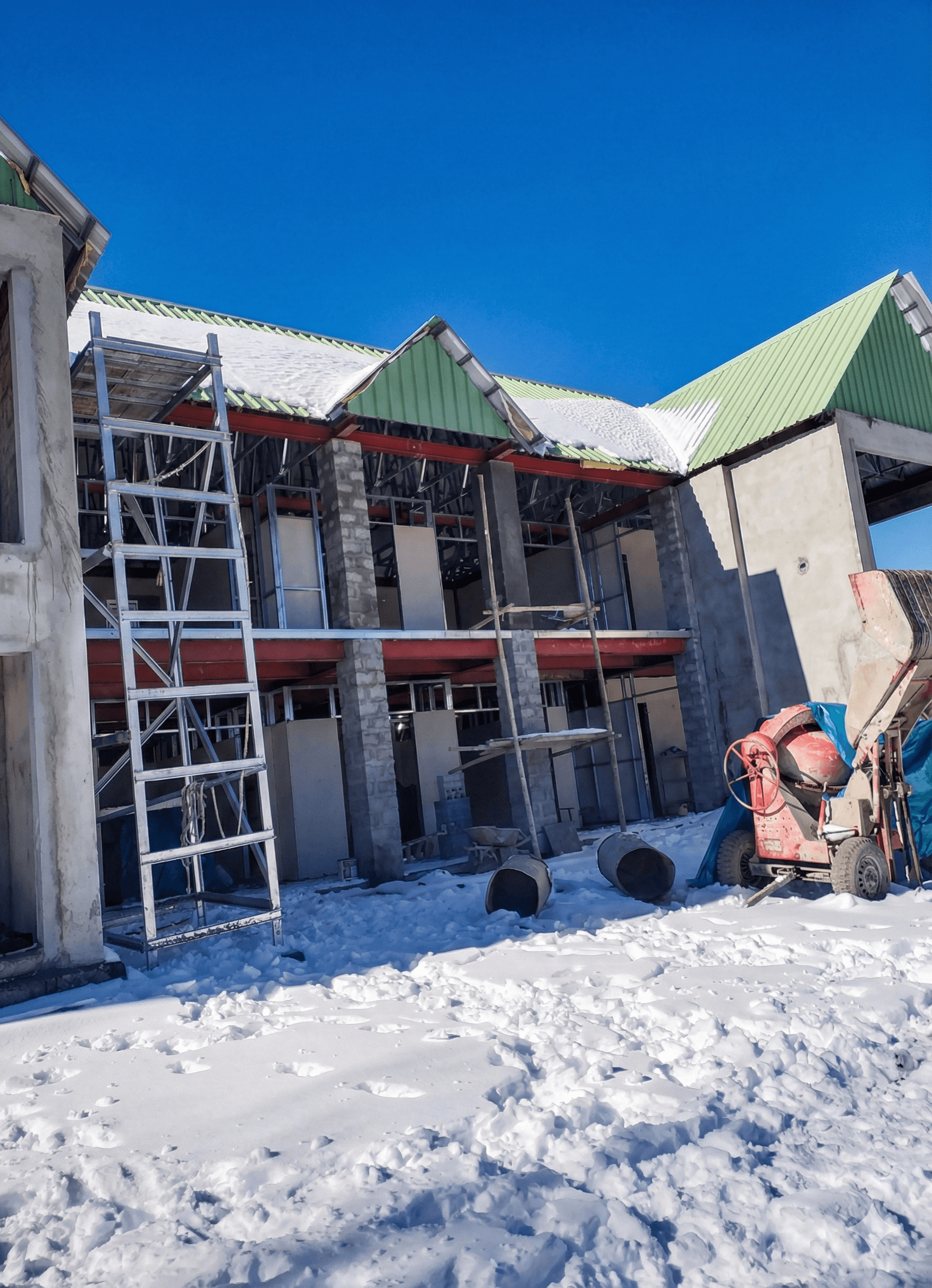 Roof Covering: Lightweight profiled sheets and translucent polycarbonate panels for natural lighting.
